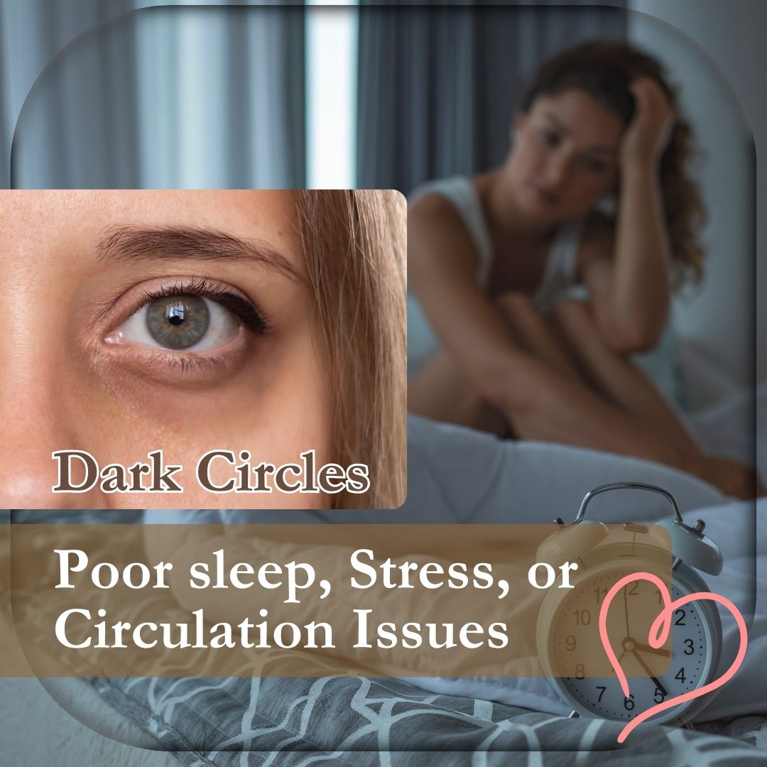 - Dark circles may be linked to poor sleep, stress, or circulation issues