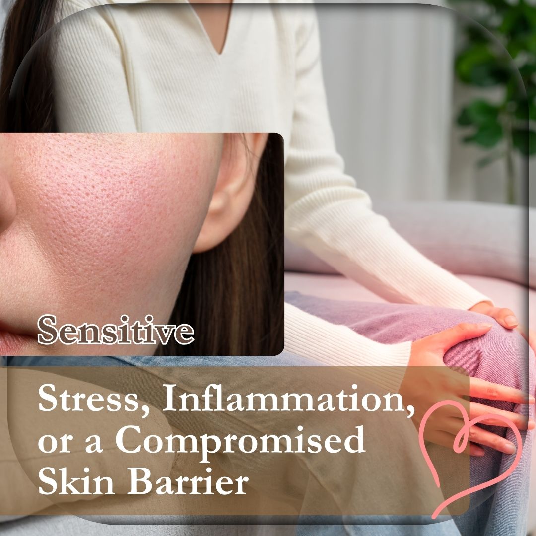 - Sensitive or reactive skin can be a sign of stress, inflammation, or a compromised skin barrier