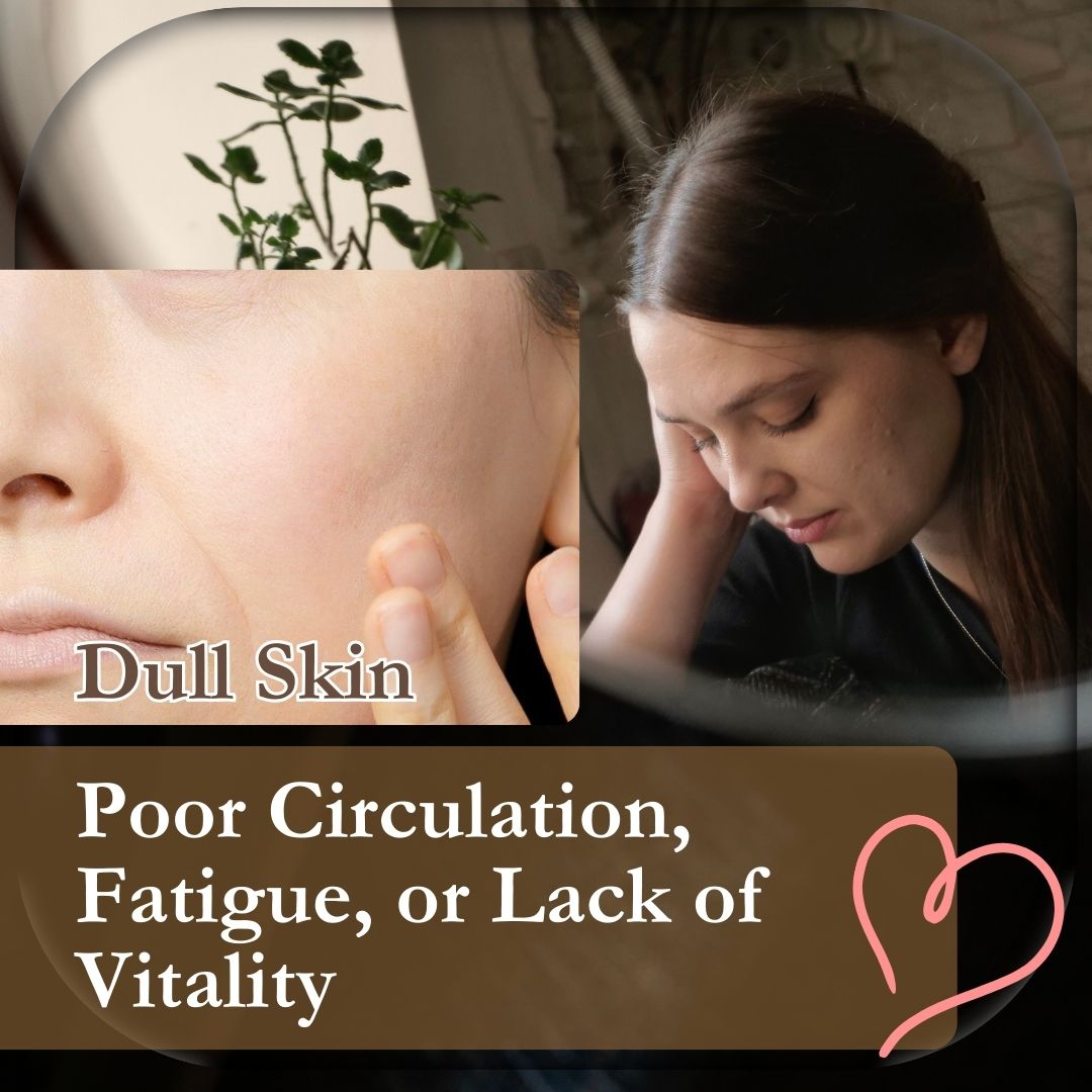 - Dull or tired-looking skin may indicate poor circulation, fatigue, or lack of vitality